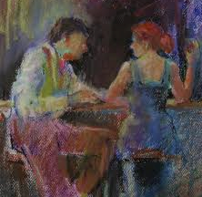 sees JOCK waving at her. Her first response is to wave back. Midway in the wave she withdraws her hand and turns back to the bar, taking another sip of her drink.